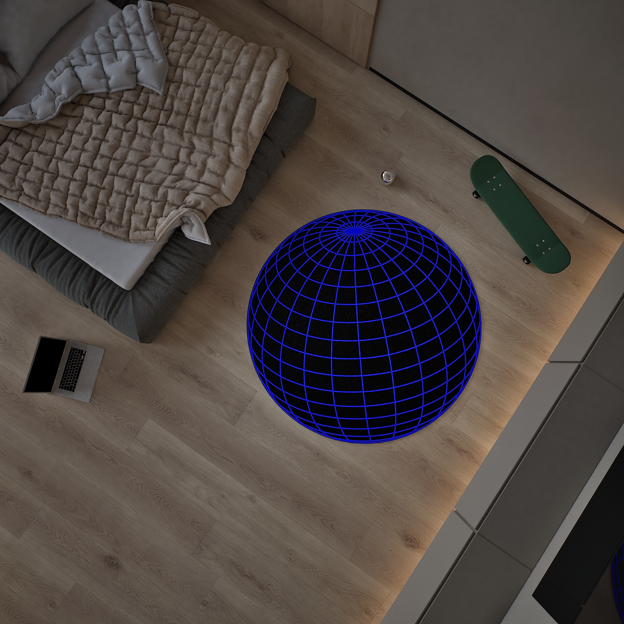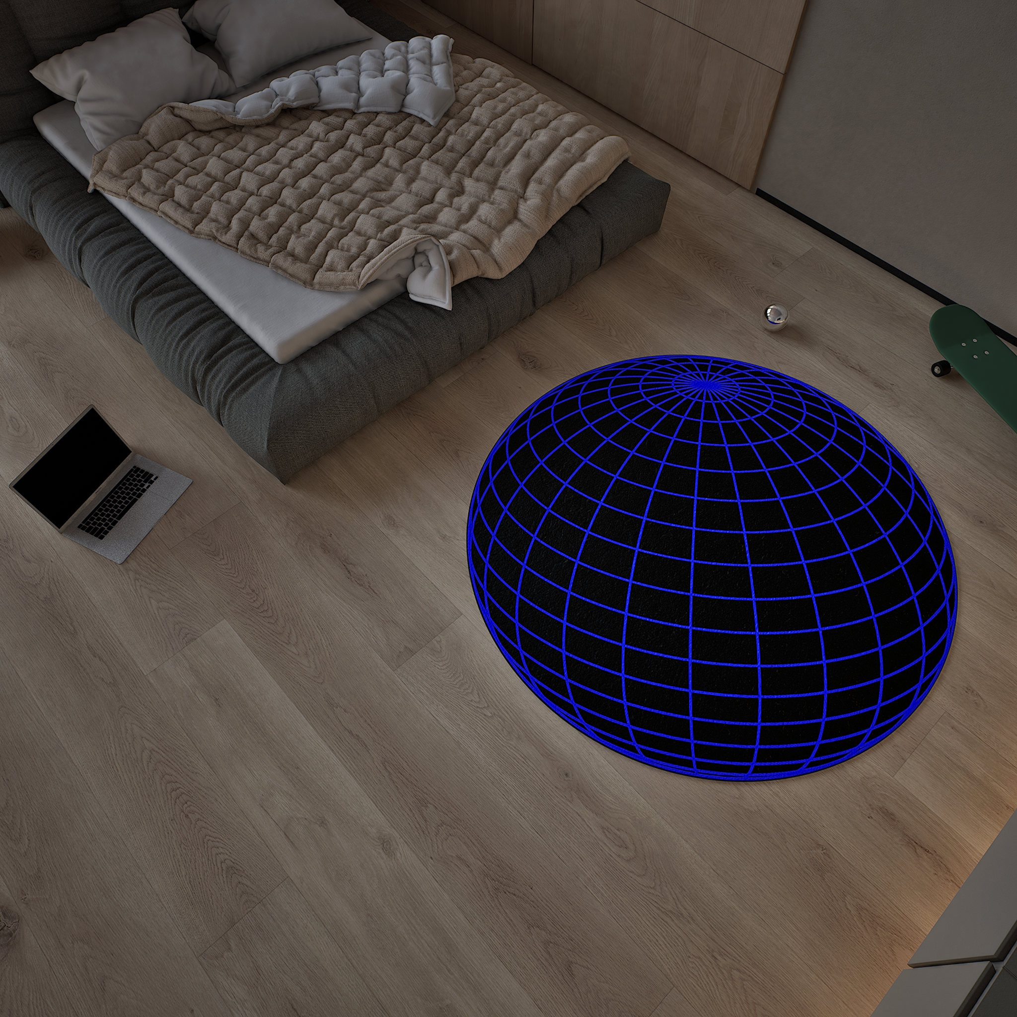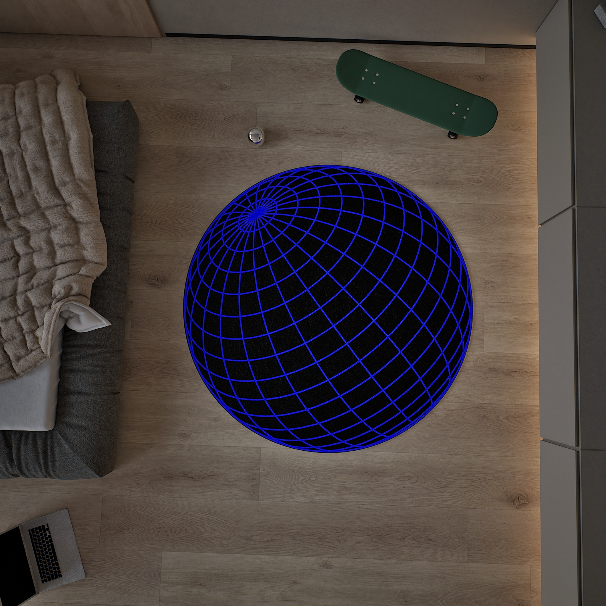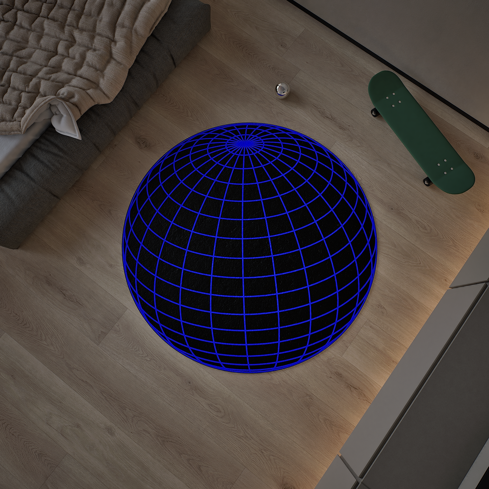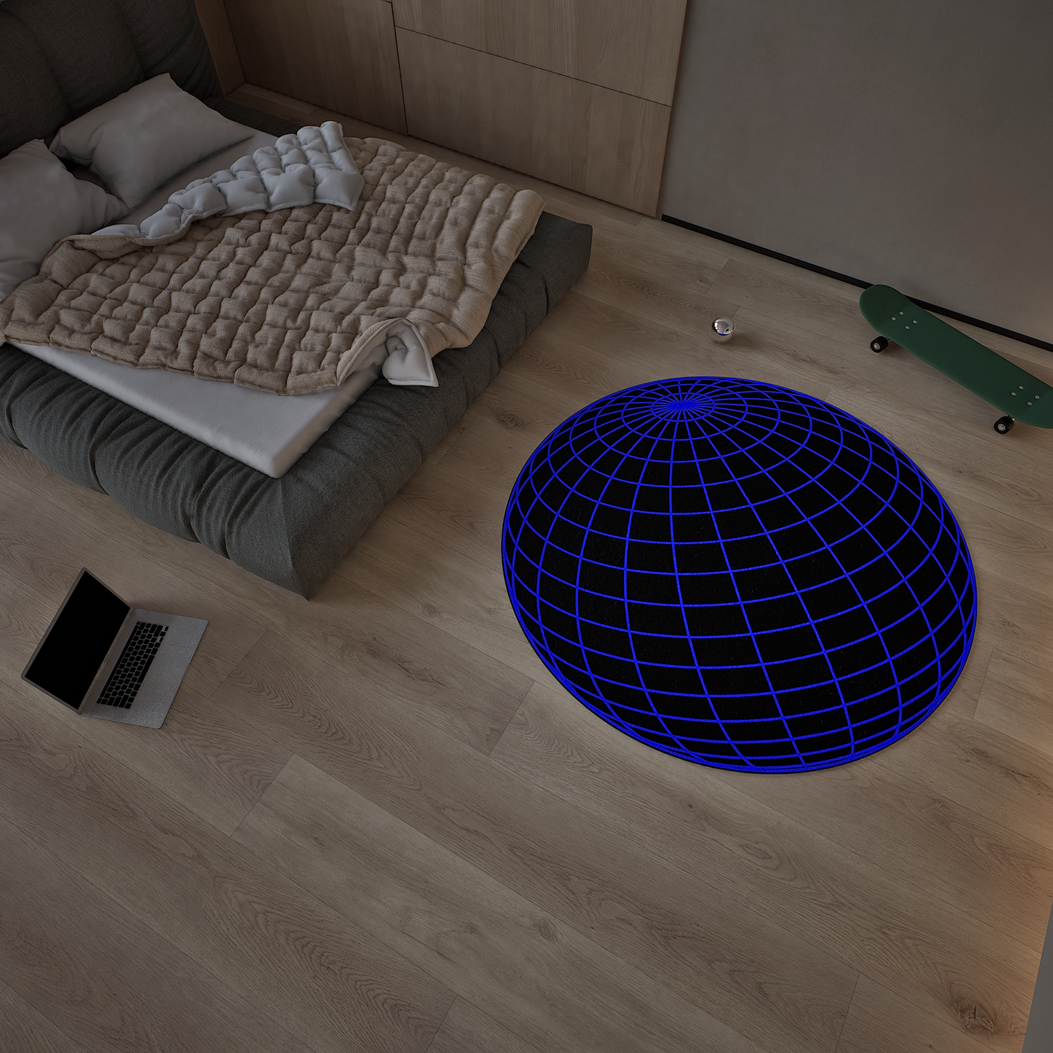 Global Hologram Area Rug, Futuristic Globe Design Washable Round Carpet