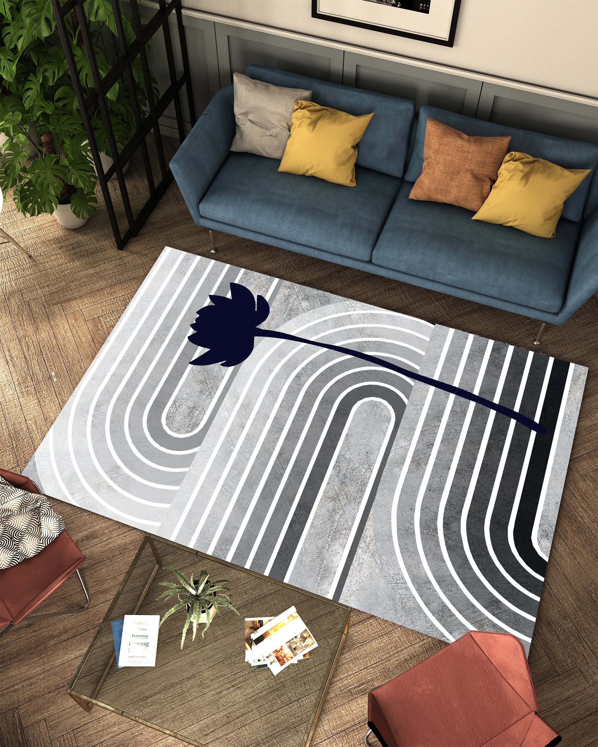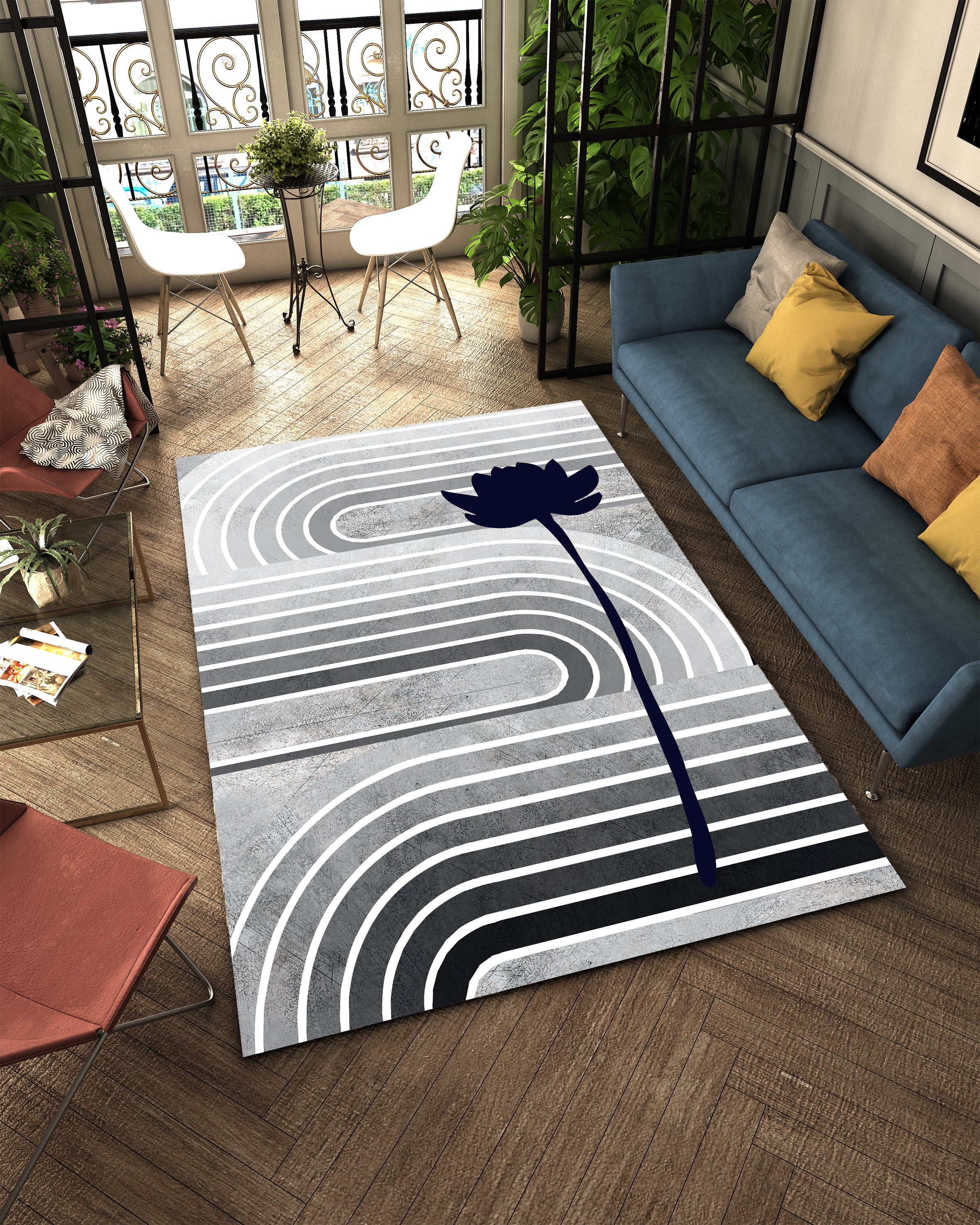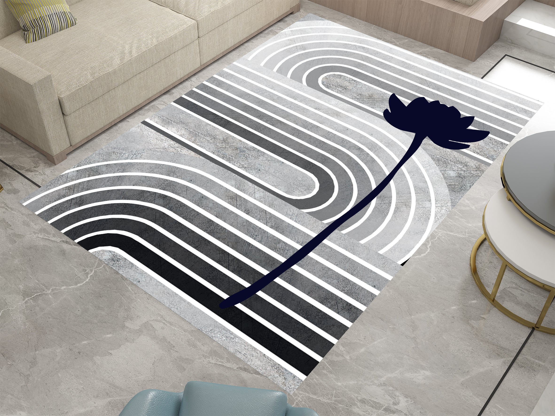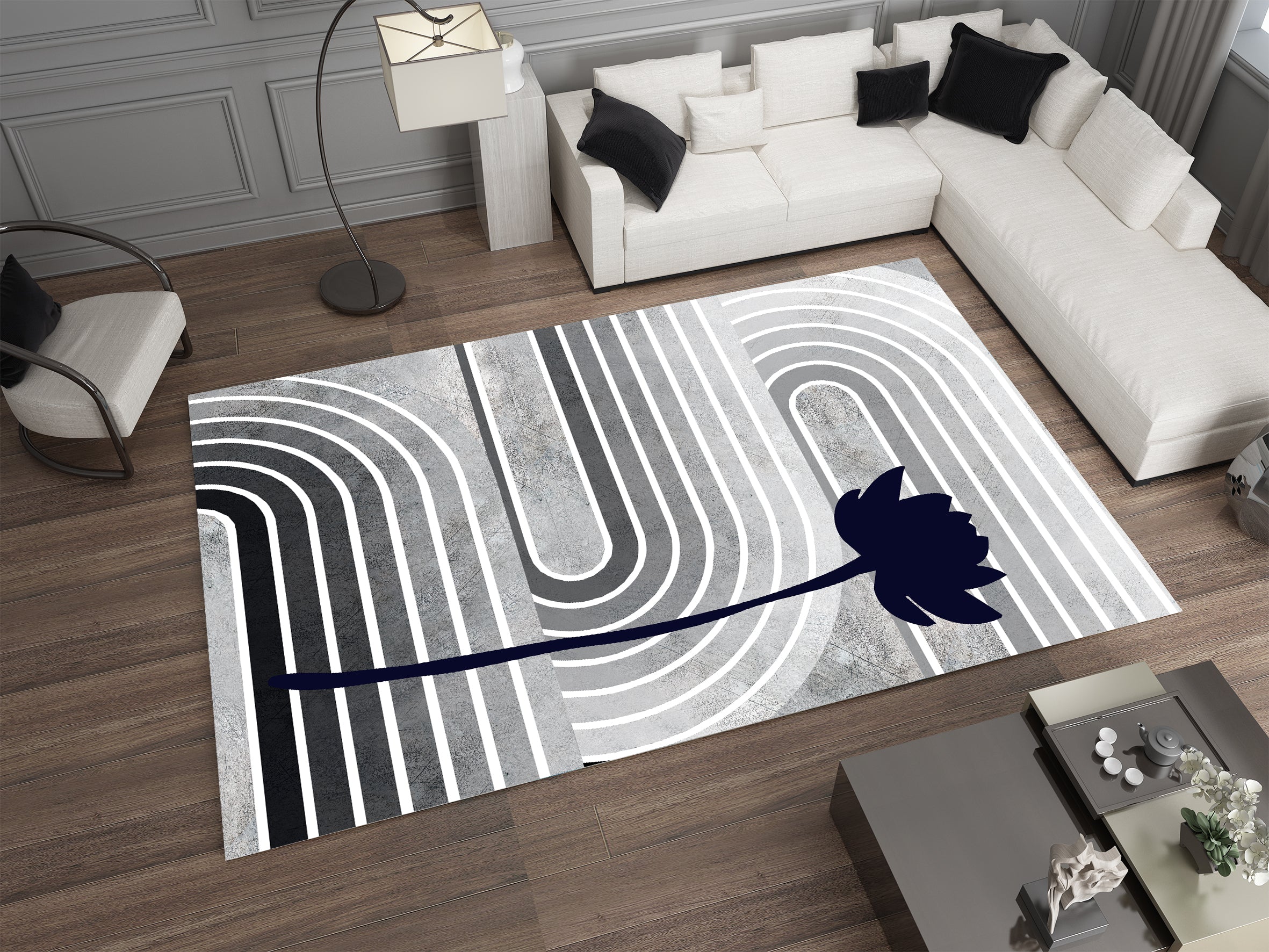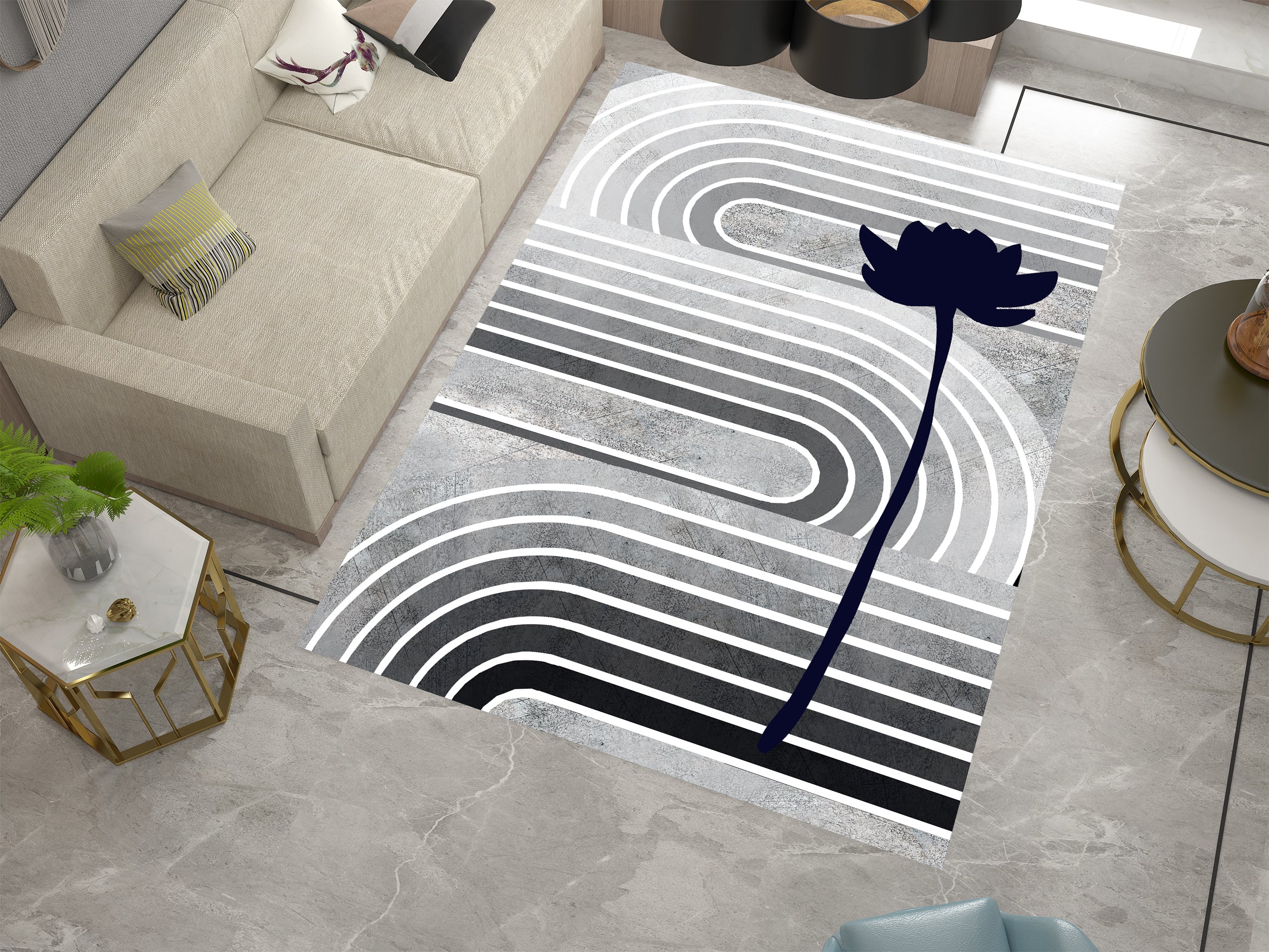 Gray Flower Area Rug, Minimalist Design Washable Carpet